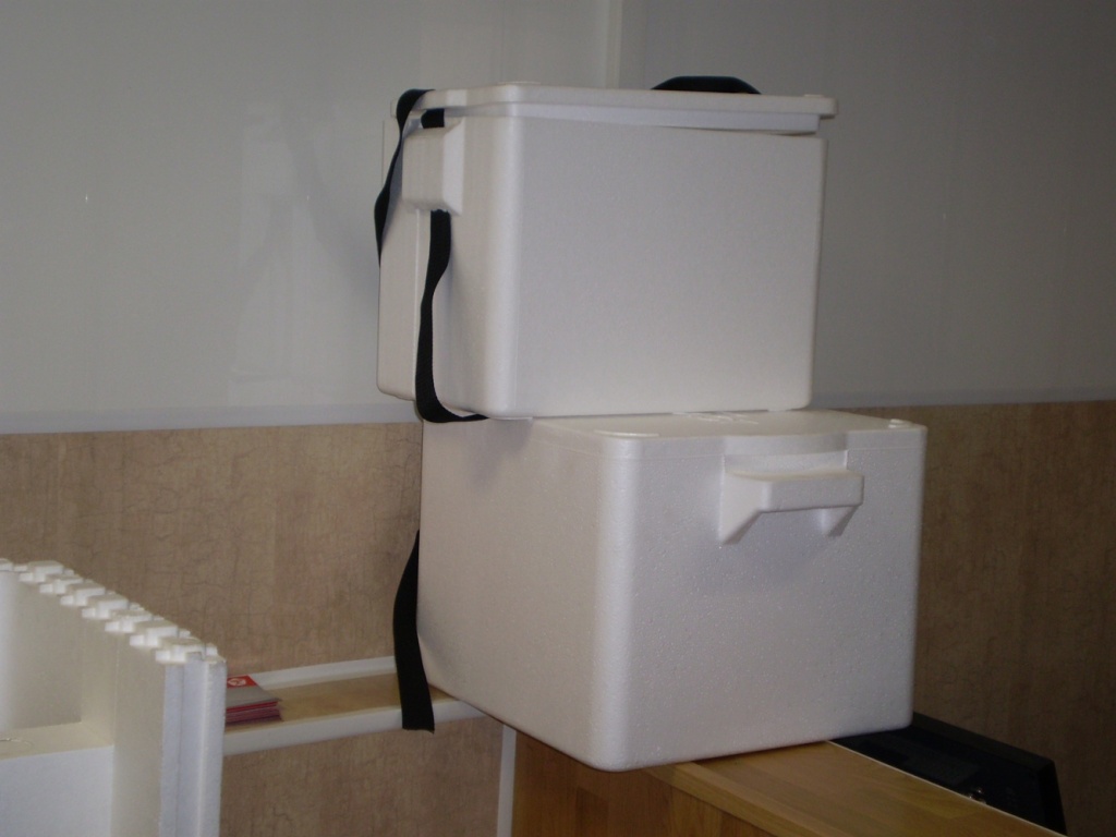 Кроме строительных материалов из пенопласта, завод «Мягкая кровля» предлагает купить термоконтейнеры удобные для перевозки овощей. Объемы от 3,7л до 40л. Так же в термоконтейнерах есть карман под аккумулятор холода.