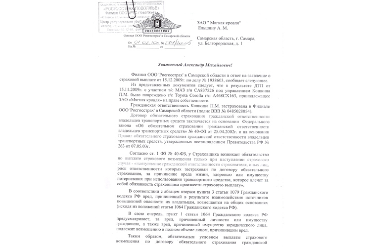 Но по заключению «Росгосстрах» т/с Тойотта нарушила ПДД и выплачивать страховку отказались (см. вложение 1 и 2).
