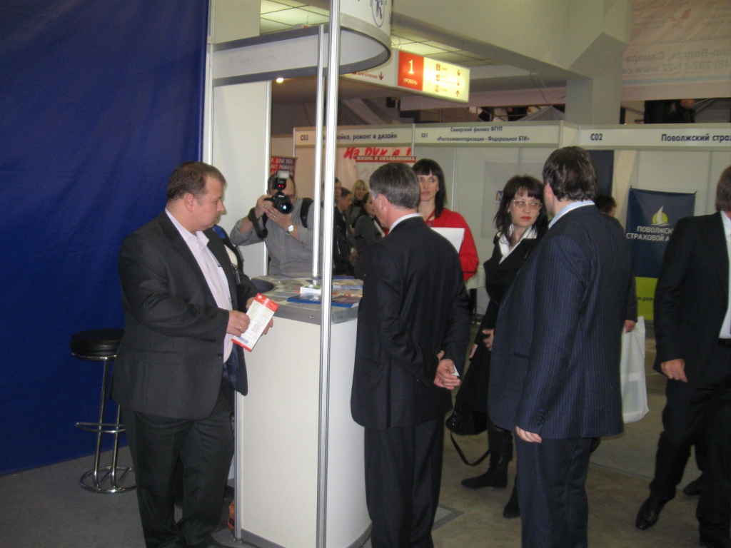 На открытие выставки стенд завода «Мягкая кровля» осмотрел министр строительства Самарской области П. К. Донской.