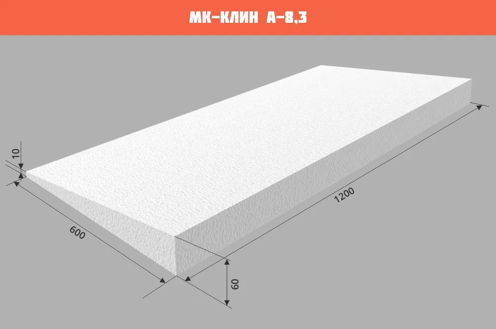 Уклонообразующие элементы изготавливаются из пенополистирола марки ППС 20 Р-А по ГОСТ 1588-2014 с прочностью на сжатие при 10% линейной деформации не менее 120 кПа. По сравнению с классическими способами разуклонки использование МК-КЛИН позволяет производить монтажные работы без применения «мокрых процессов» в устройстве кровли и облегчает нагрузку на перекрытия. Также существенно сокращает время выполнения работ.