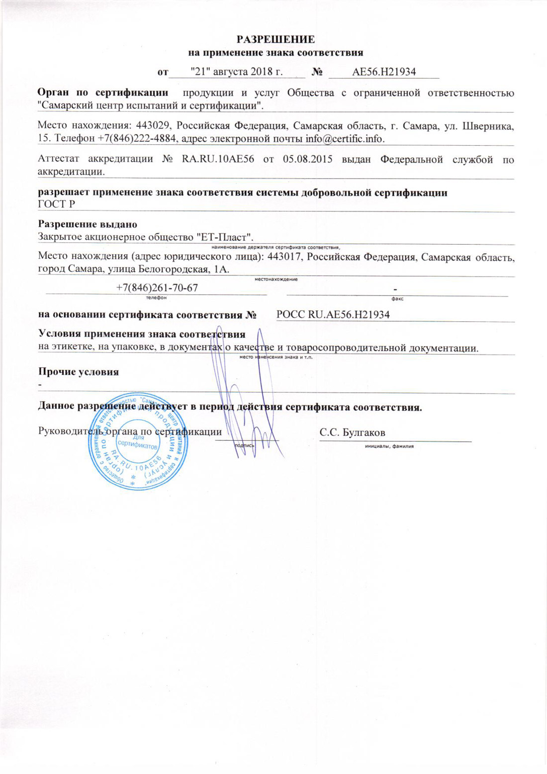 Добровольный сертификат соответствия. Самарская Мастика Приклеивающая.